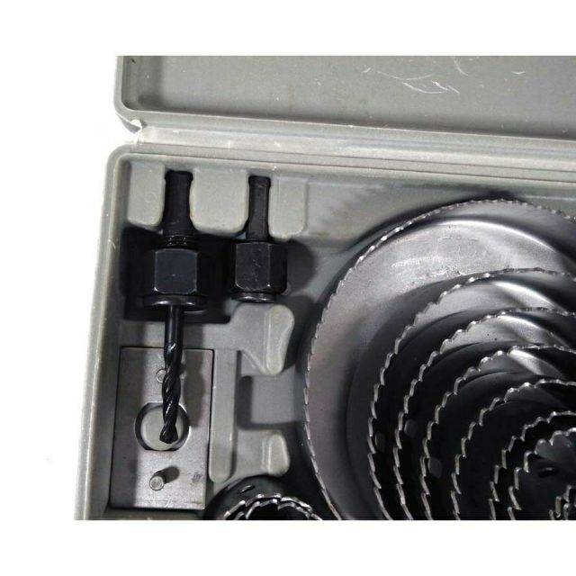 Bộ mũi khoét thạch cao và gỗ mềm 16 chi tiếtBộ mũi khoét chuyên dùng với thạch cao và gỗ mềm như thông, keo và ván công nghiệp Kích cỡ 13 mũi đã dạng: Ø19, Ø22, Ø25, Ø28, Ø32, Ø38, Ø44, Ø54, Ø64, Ø76, Ø89, Ø102, Ø127 (mm) Chất liệu: Hợp kim siêu cứng sơn tĩnh điện chống rỉ