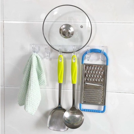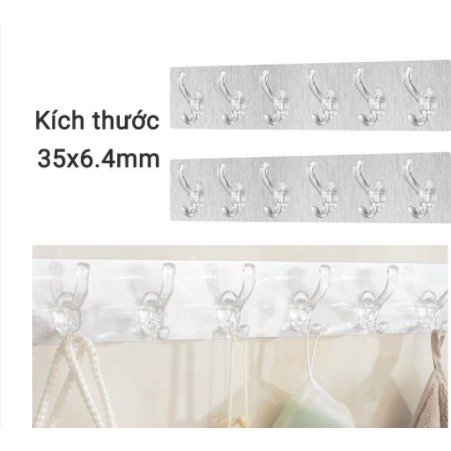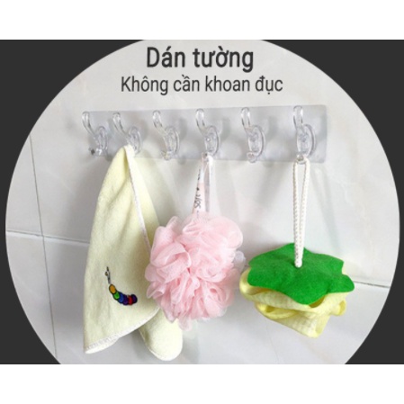 KHỐI 6 MÓC TRONG SUỐT- Thanh 6 móc treo đồ dán tường siêu dính chịu lực đa năng trong suốt