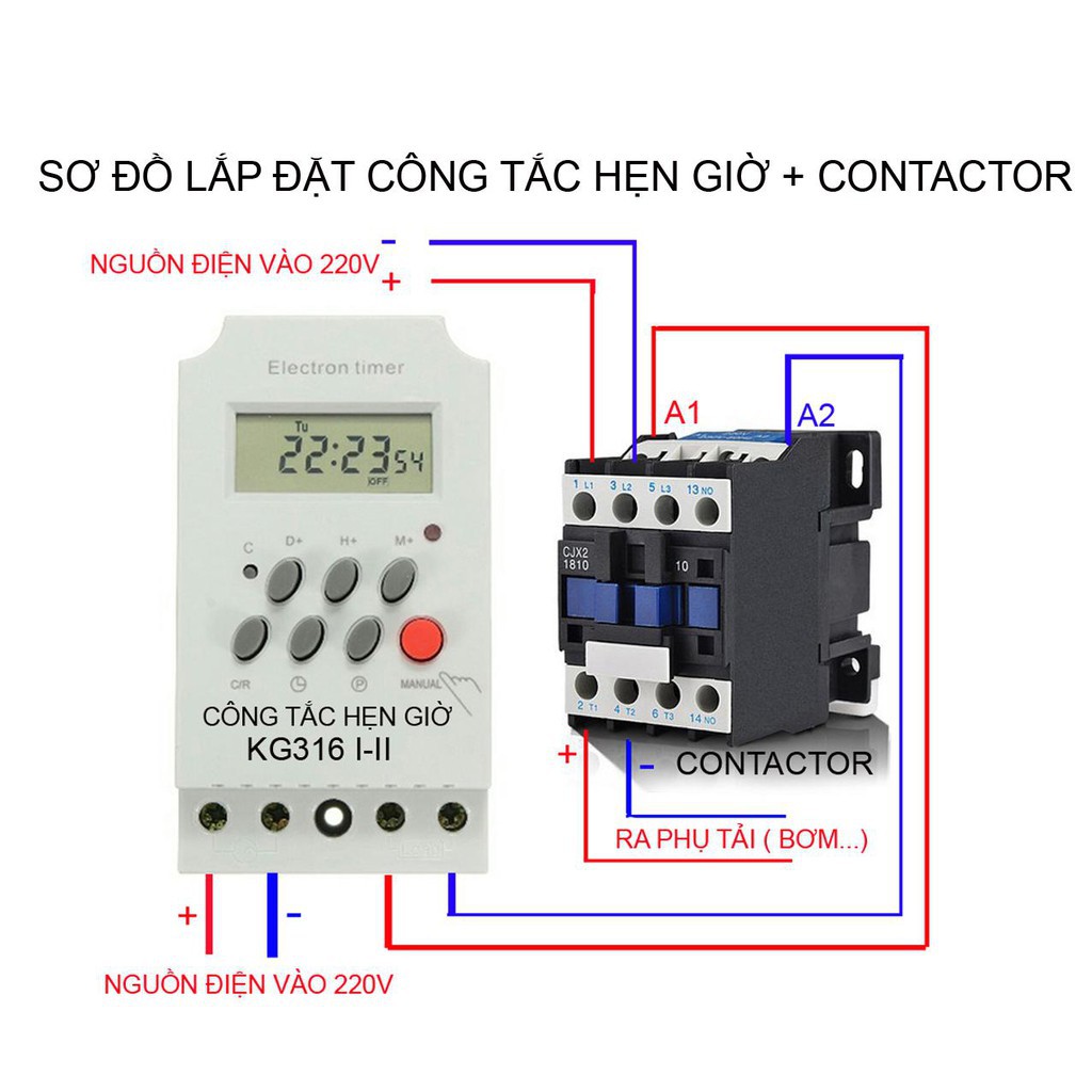 Khởi động từ AC contactor 25A/220V dùng kết hợp với các thiết bị hẹn giờ như KG316 t-II ....vvv để điều khiển bật/tắt các thiết bị điện 1P có công suất lên đến 3500WĐiện áp làm việc 220V-50hz