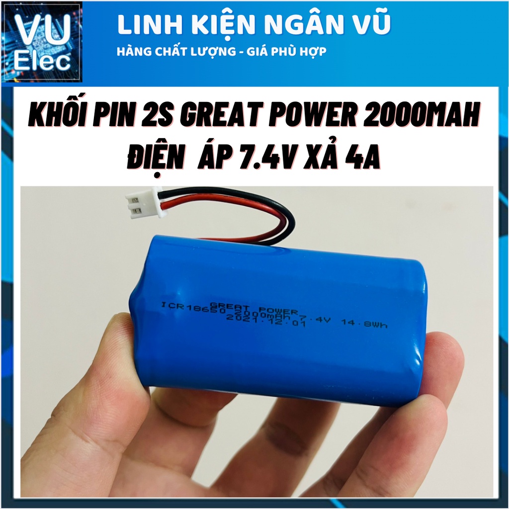 Thiết Bị Điện Gia Dụng > Pin || Khối pin 2s greatpower 2000mah 7.4V đầy 8.4V xả max 4A dành cho loa, pin mặt trờiCòn hàng