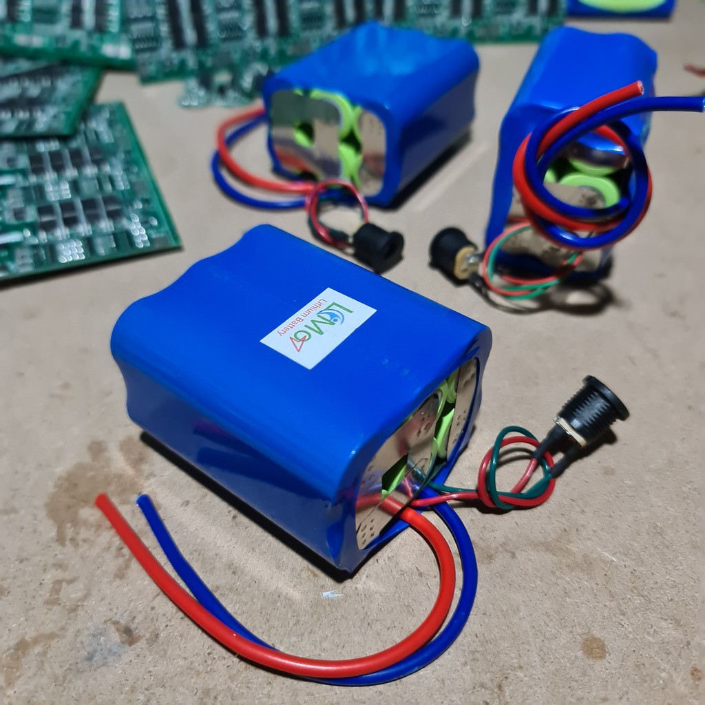 - Được đóng từ 6 cell pin 18650 mới + Mạch bảo vệ 3S 25A.