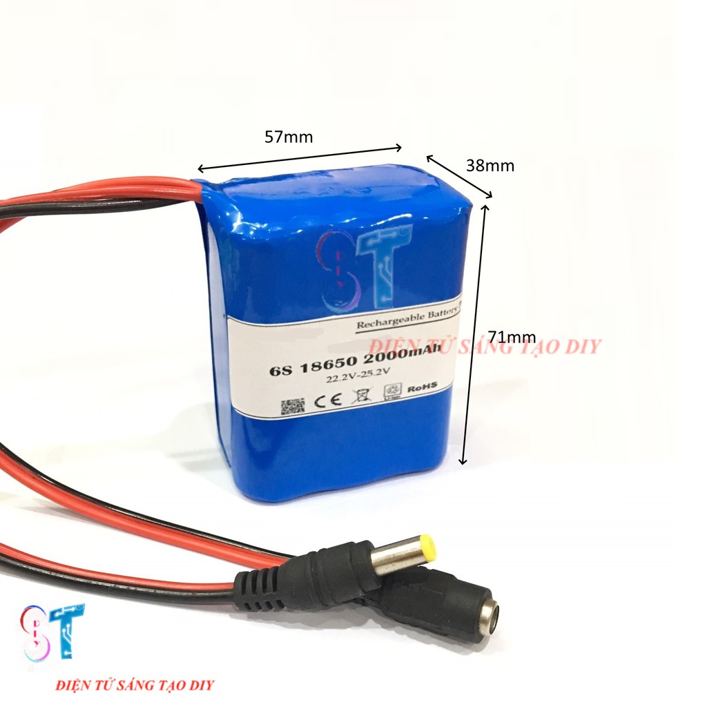 Khối Pin sạc 24V Pin Sạc Lithium 6S 1P 18650 22.2V – 25.2V 2000mAh Dùng Cho Quạt tích điện, đèn tích điện 24V