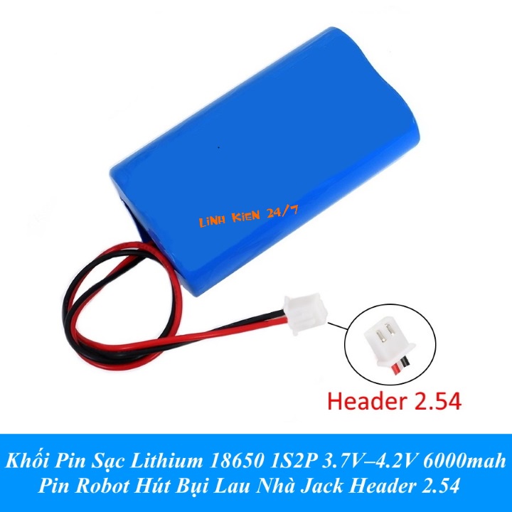 Khối Pin Sạc Lithium 3.7V–4.2V 6000mah 18650 1S2P Pin Robot Hút Bụi Lau Nhà Jack Header 2.54