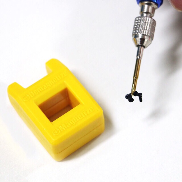 - Để Tăng từ : Đặt đầu Tô vít vào trong ô của khối và xoay đều tầm 3s rồi bỏ ra. Đầu tô vít lúc này đã có từ tính