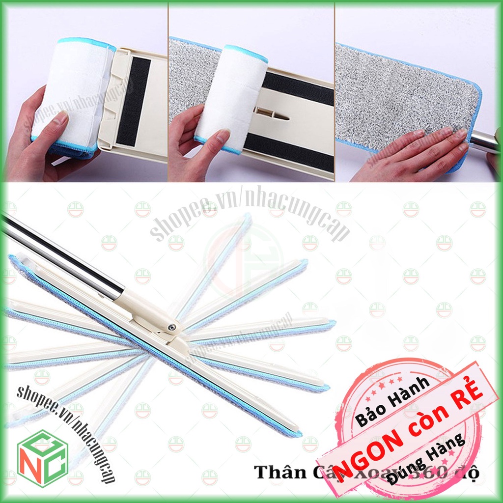 - Bàn lau thiết kế dạng dẹt xoay 360 độ siêu sạch với chất liệu vải vi sợi Microfiber mềm mại thấm hút bẩn cực mạnh, tháo lắp dễ dàng, giặt máy cực tiện lợi.