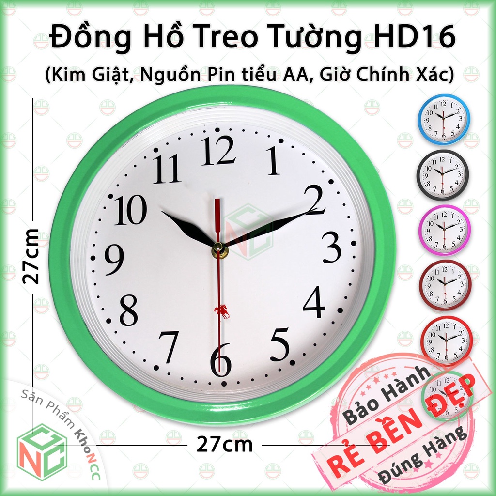Giới thiệu [KhoNCC] Đồng Hồ Treo Tường HD16 Kim Giật - Khung Viền Tròn Nền Trắng - NQL-HD16Xl (Nhiều màu)