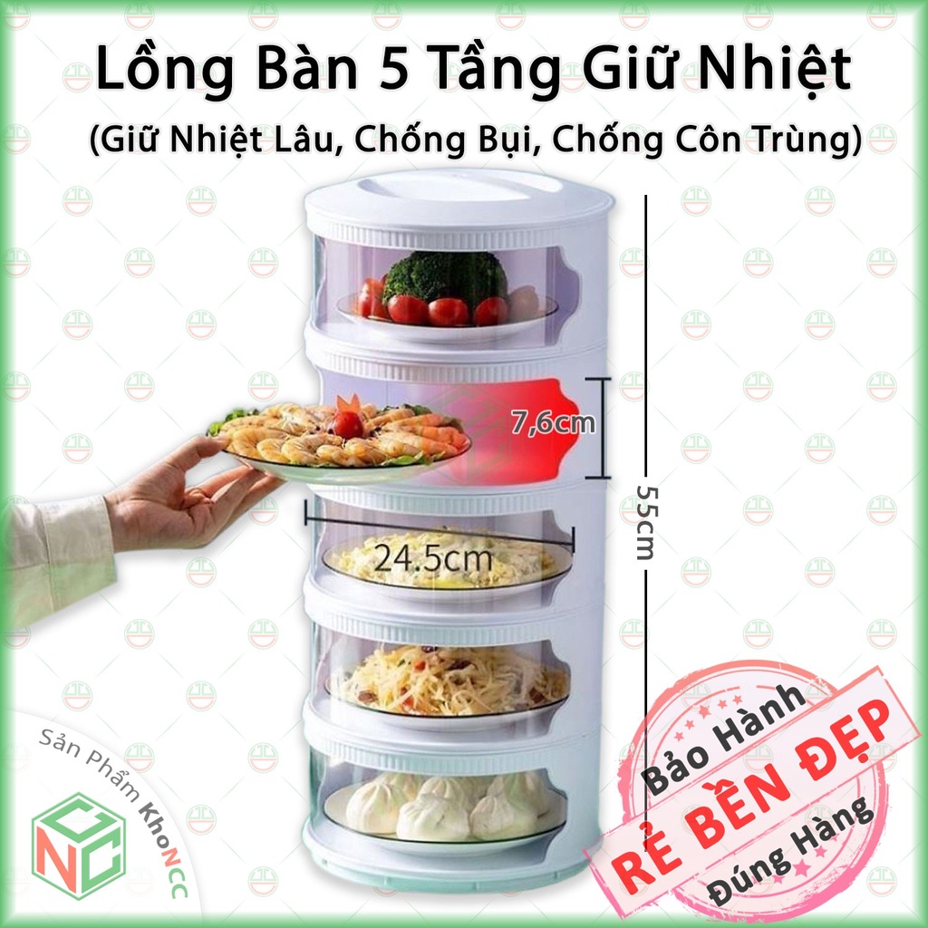 [KhoNCC] Lồng Bàn 5 Tầng Lắp Ráp Sẵn Giá Rẻ - Giữ Nhiệt Lâu - Chống Gián Chuột Côn Trùng Hiệu Quả - NLM-LB5TLRS