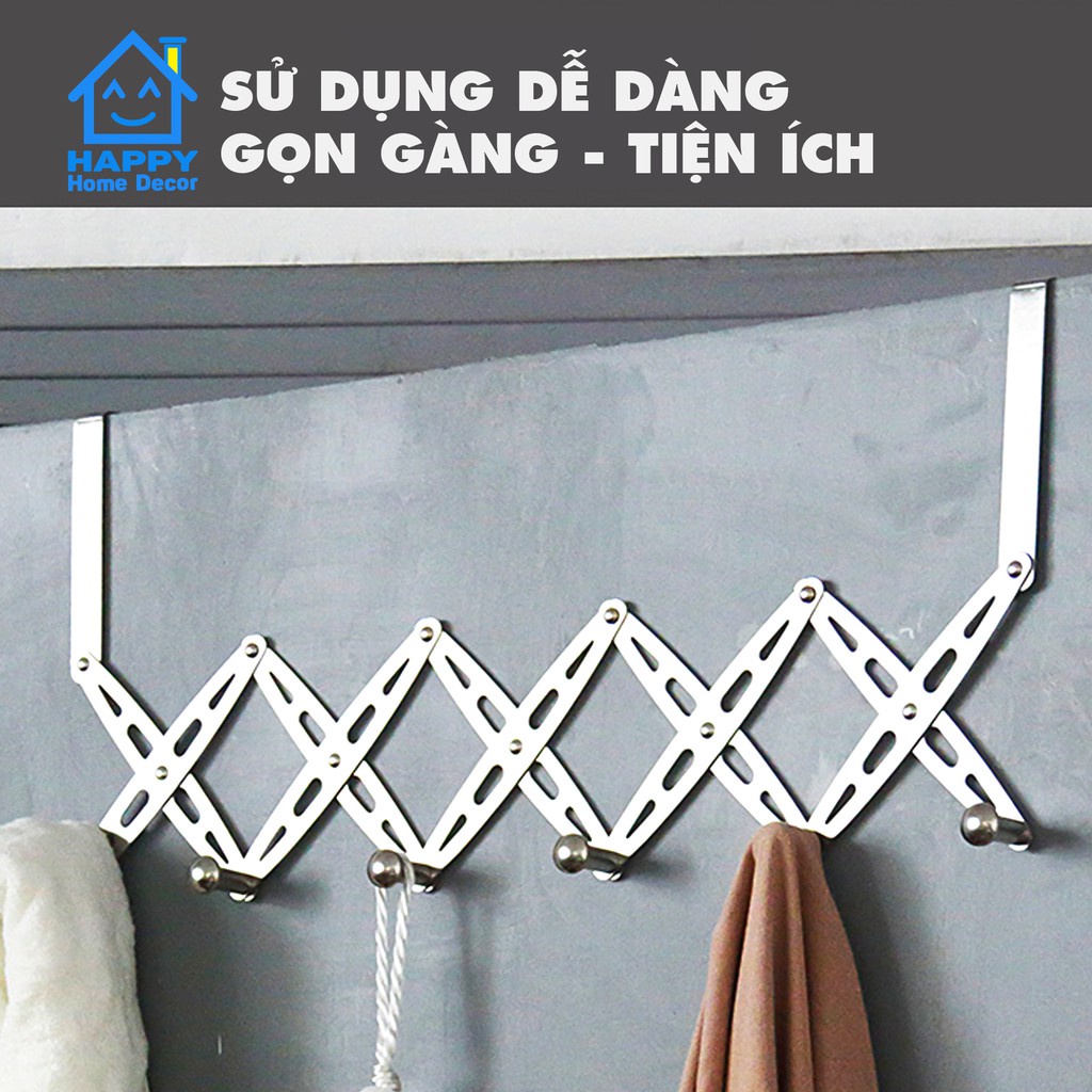 Móc đồ treo cửa inox 304 chống rỉ sét, 6 chấu xếp gọn tiện lợi, gia dụng thông minhChất liệu móc Inox 304 không rỉ sét