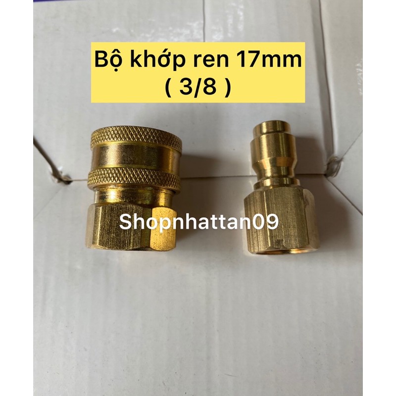 Bộ khớp bi nối nhanh (bằng ĐỒNG )dây rửa cao áp 3/8 ( ren 17mm) lắp máy rửa xe công nghiệp