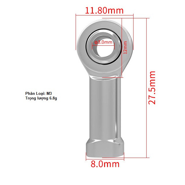 Kích thước ren trong: M4