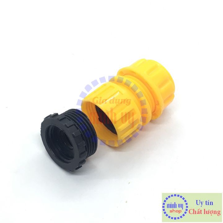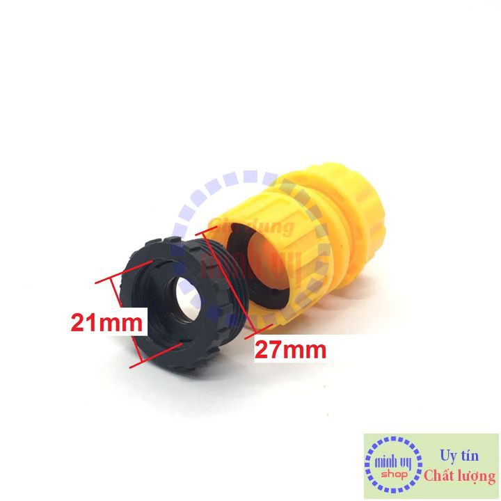 - Cấu tạo: 1 đầu nối nhanh ống mềm, 1 đầu ren trong 21mm (đầu nhựa có thể đổi thành 27mm)