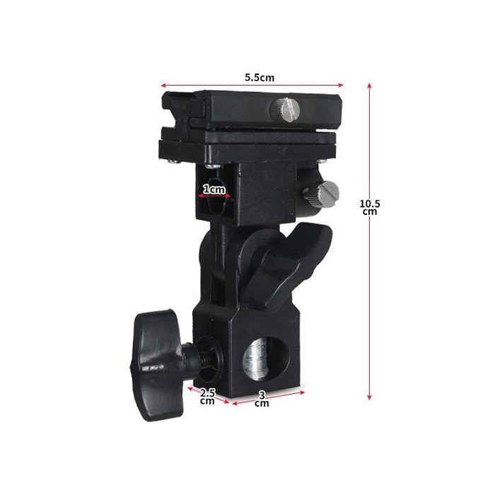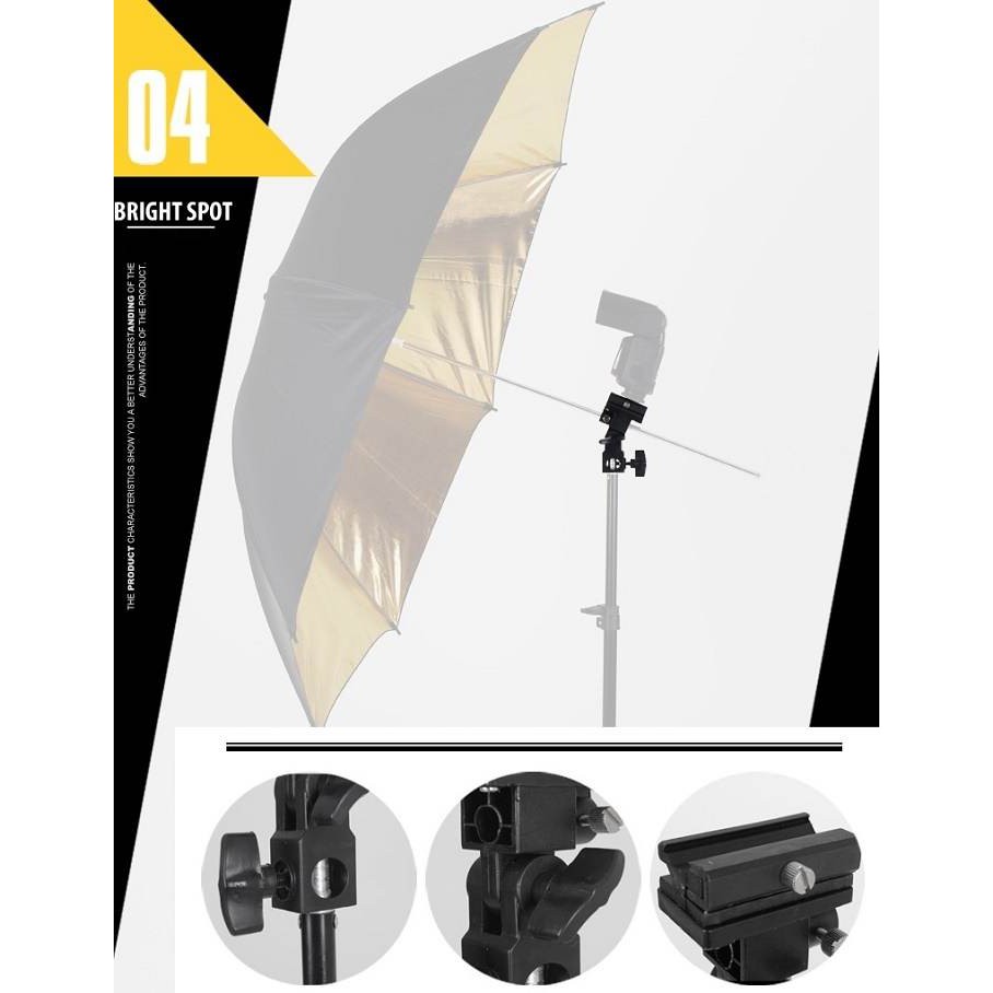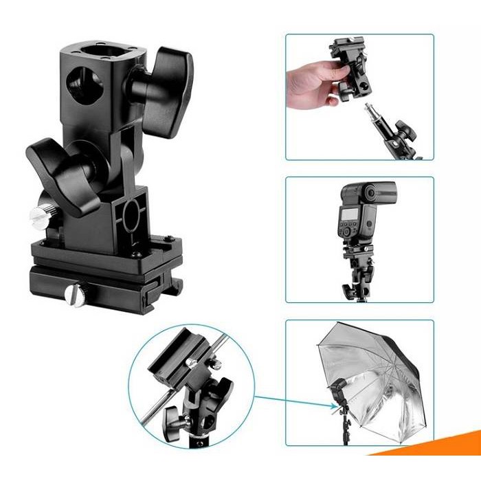 Khớp nối đèn Flash có khe cắm dù rất tiện dụng, lại chắc chắn, đảm bảo giữ thiết bị được kiên cố, thách thức cả khi quay ngoài trời với gió mạnh. Đây là một trong những phụ kiện studio tuyệt vời, phù hợp với nhiều loại đèn flash, kích thước gọn nhẹ, dễ dàng điều chỉnh.THÔNG SỐ KỸ THUẬT: