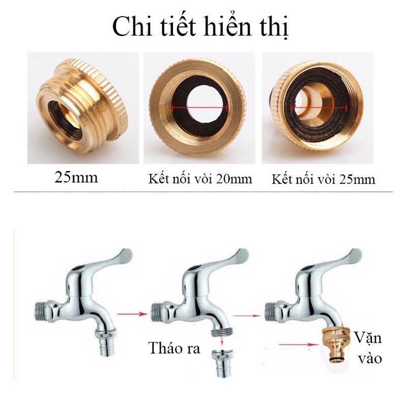 Nhà cửa & Đời sống > Dụng cụ & Thiết bị tiện ích > Chậu rửa & vòi nước || Khớp nối đồng cho vòi nước, máy rửa xe với 2 lớp ren kết nốiCòn hàng