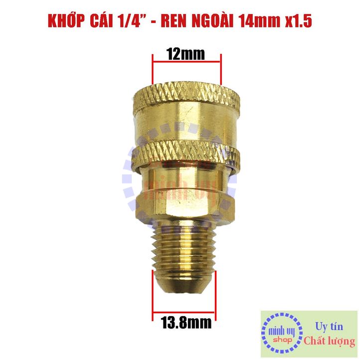 Khớp nối nhanh 1/4inch ren ngoài 14mm lồi- Chất liệu : full đồng thau