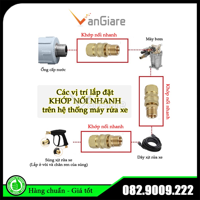 Khớp nối nhanh cho máy rửa xe, phụ kiện nối nhanh 13mm 14mm 17mm 21mm 22mm