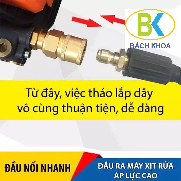 - Tương thích với đa số máy xịt rửa cao áp, máy rửa xe áp lực cao, máy rửa xe gia đình. Giúp việc nối dây phun xịt rửa vào máy nhanh, dễ dàng hơn bao giờ hết