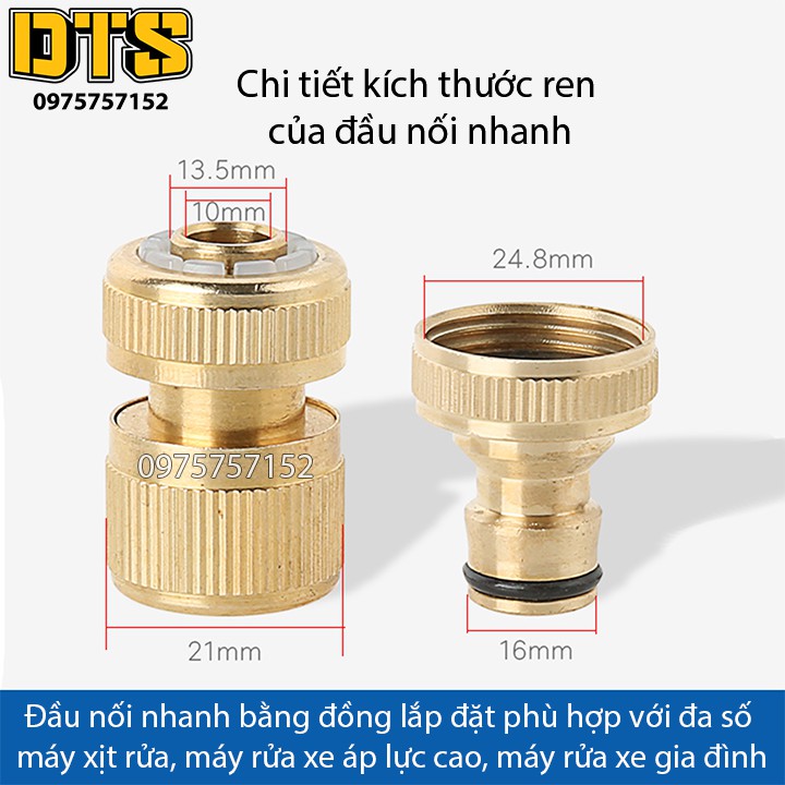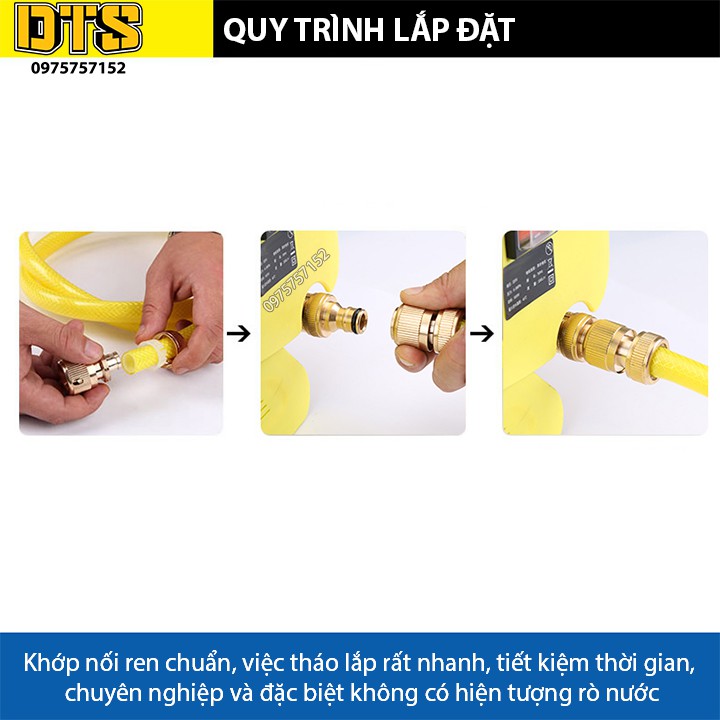 Nếu việc trước đây để tháo lắp dây cấp nước với máy vô cùng khó khăn, bất tiện. Bạn muốn di chuyển linh hoạt hoặc cất dây gọn gàng khi không sử dụng đến, với đầu nối cũ khi đã vặn rất khó để tháo, có nguy cơ bị chờn ren hay bị vỡ. Mọi việc tưởng chừng bất khả thi. Nhưng nay đã khác, với khớp nối nhanh chúng tôi giới thiệu ở đây thì mọi việc vô cùng dễ dàng hơn bao giờ hết. Khớp nối nhanh bằng đồng, thiết kế thông minh, tháo lắp linh hoạt bằng hệ thống bi ngàm giữ chịu áp lực cao, kết nối chắc chắn, không bao giờ có hiện tượng rò nước.Thông số tin nổi bật: