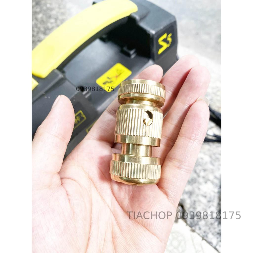 Bộ khớp nối nhanh đầu vào nước cho máy rửa xe áp lực cao, máy xịt rửa cao áp, máy rửa xe gia đìnhNếu việc trước đây để tháo lắp dây phun xịt áp lực cao với máy vô cùng khó khăn, bất tiện. Bạn muốn di chuyển linh hoạt hoặc cất dây xịt rửa gọn gàng khi không sử dụng đến, với đầu nối cũ khi đã vặn rất khó để tháo, có nguy cơ bị chờn ren không như ban đầu. Mọi việc tưởng chừng bất khả thi. Nhưng nay đã khác, với khớp nối nhanh chúng tôi giới thiệu ở đây thì mọi việc vô cùng dễ dàng hơn bao giờ hết. Khớp nối nhanh bằng đồng, thiết kế thông minh, tháo lắp linh hoạt bằng hệ thống bi ngàm giữ chịu áp lực cao, kết nối chắc chắn, không bao giờ có hiện tượng rò nước.