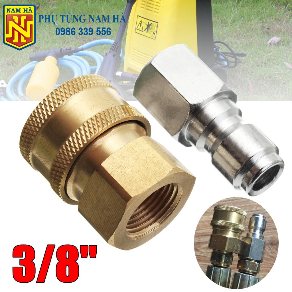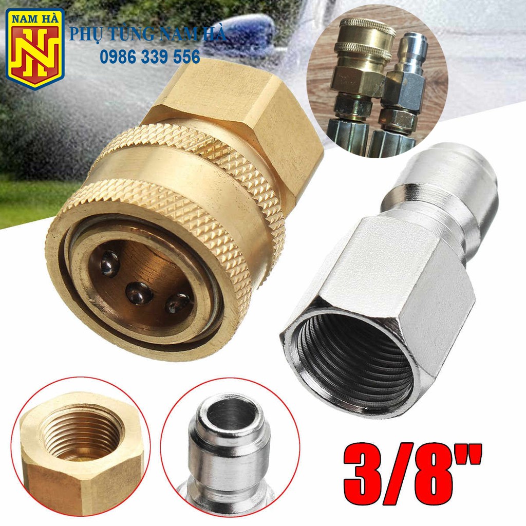 Đầu khớp nối nhanh cho dây cao áp rửa xe ren 3/8 inch là phụ kiện máy rửa xe được gọi là khớp nối nhanh rất tiện khi tháo lắp dây vào máy,