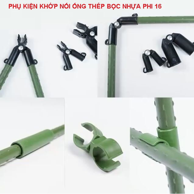 Giới thiệu Khớp nối PHI 16 - Phụ kiện khớp nối cho ống thép bọc nhựa PHI 16 dùng làm giàn cà chua, hoa hồng, dưa leo
