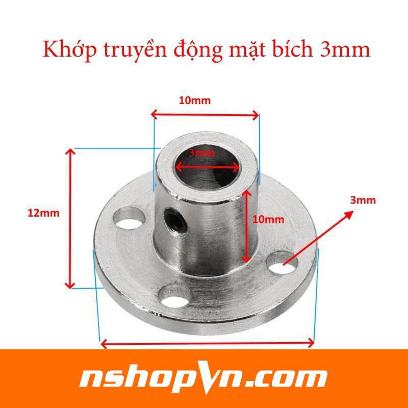 Khớp truyền động mặt bích 3mm / 4mm / 5mm / 6mm / 8mm / 10mm / 12mmLỗ nối trục động cơ : 3mm / 4mm / 5mm / 6mm / 8mm / 10mm / 12mm