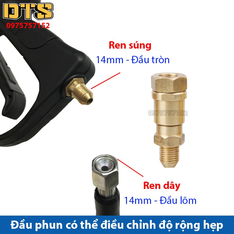 - Kích thước ren của Khớp xoay nối súng: Đầu nối với súng có ren trong 14mmm