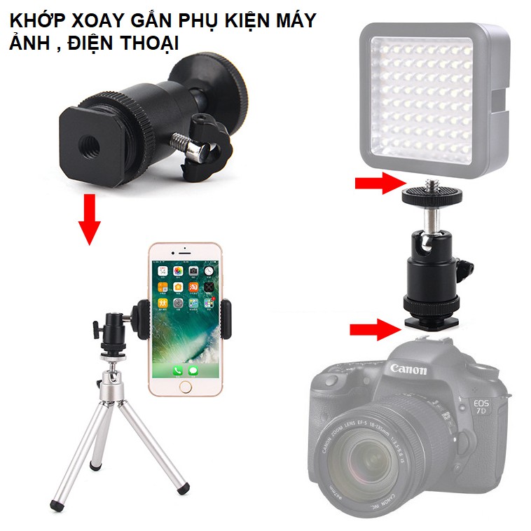 Giới thiệu Khớp xoay gắn máy ảnh, phụ kiện máy ảnh,điện thoại xoay 90 độ bằng hợp kim cao cấp