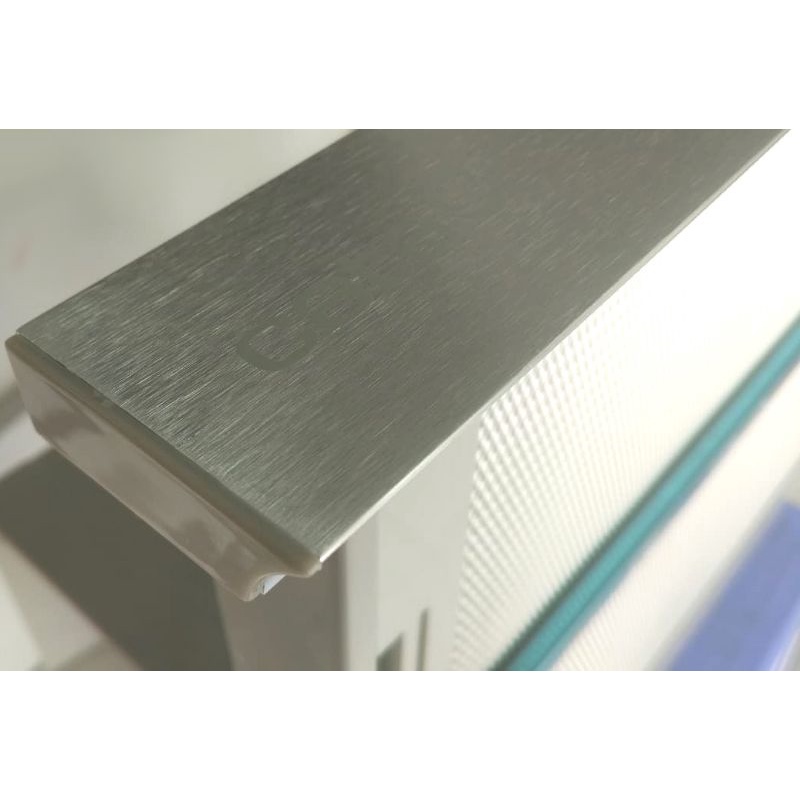 Phần inox phía trước được sử dụng hợp kim nhôm cho khả năng chống bám vân tay rất tốt. Dù bạn có di tay nhiều lần thì vẫn không nhìn thấy vết bẩn trên bề mặt. Dạng hợp kim này làm phay xước theo một chiều phù hợp với hầu hết các màu tủ bếp khác nhau.