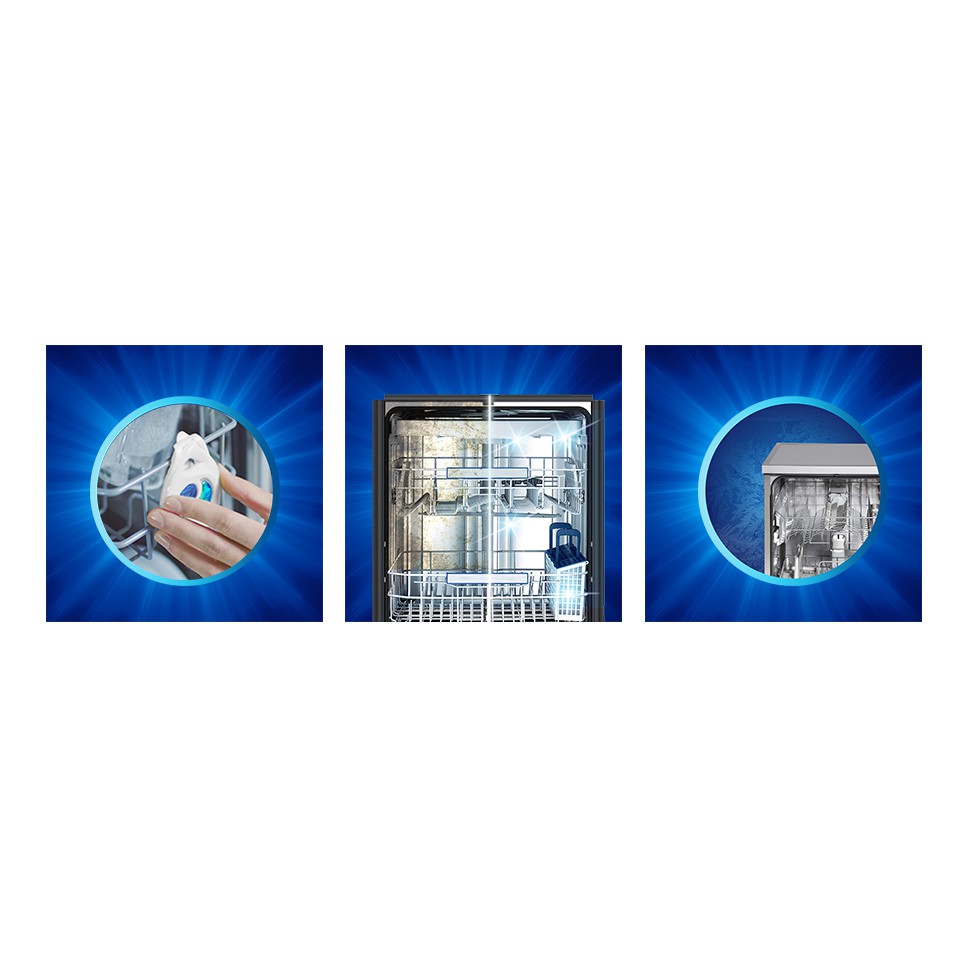 Chỉ cần treo Viên tạo mùi chanh Finish vào giỏ trên của máy rửa chén để nó không chặn cánh tay phun. Sau khoảng 60 lần giặt, thay thế máy làm mát không khí bằng một cái mới.