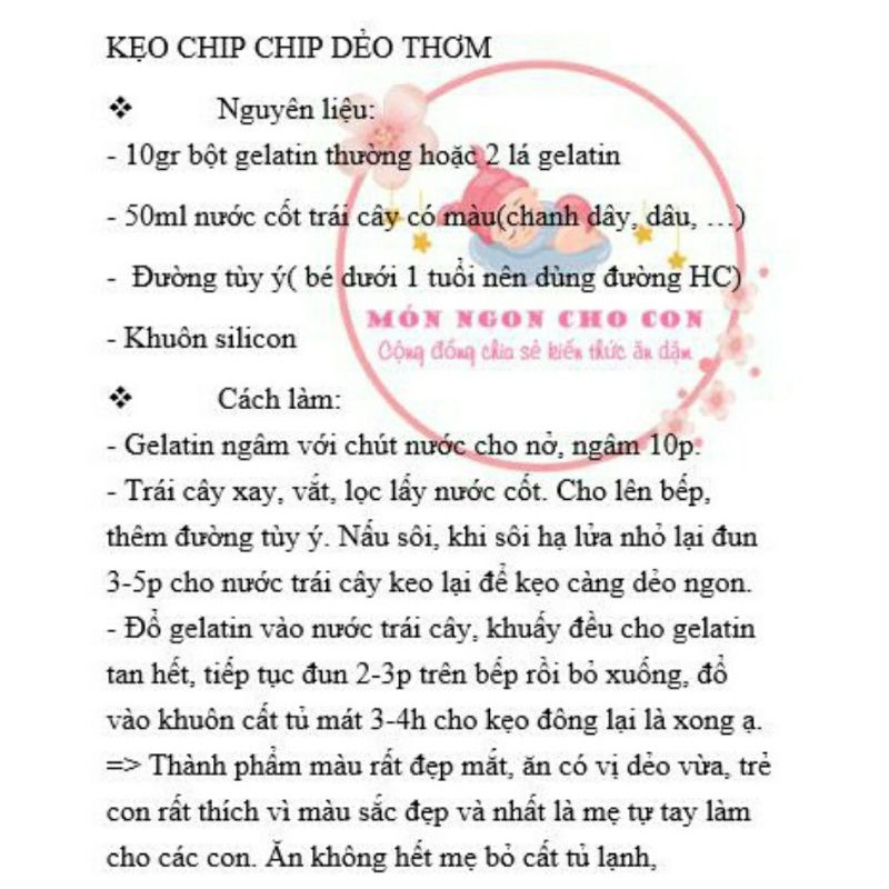 Công dụng: Dùng đổ thach, rau câu, kẹo dẻo...