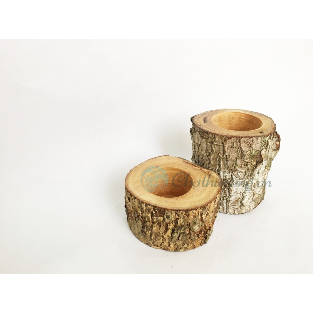 Khúc gỗ tự nhiên làm đế đựng nến, chậu gỗ trồng cây, trang trí, decor, đạo cụ chụp hình 5-7-12cm