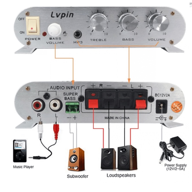 - Subwoofer đầu ra. Rất khuyến khích to Subwoofer mania.