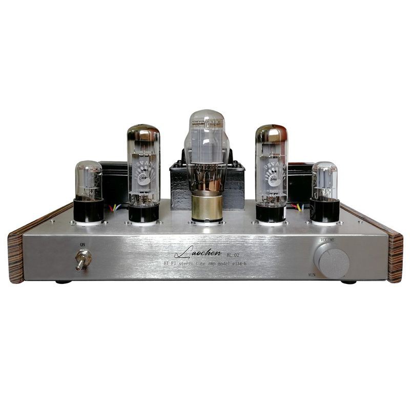 Bộ khuếch đại âm thanh Ampli Oldchen EL34-b BL-02 màu bạc 2 bên sườn gỗ 5 bóng