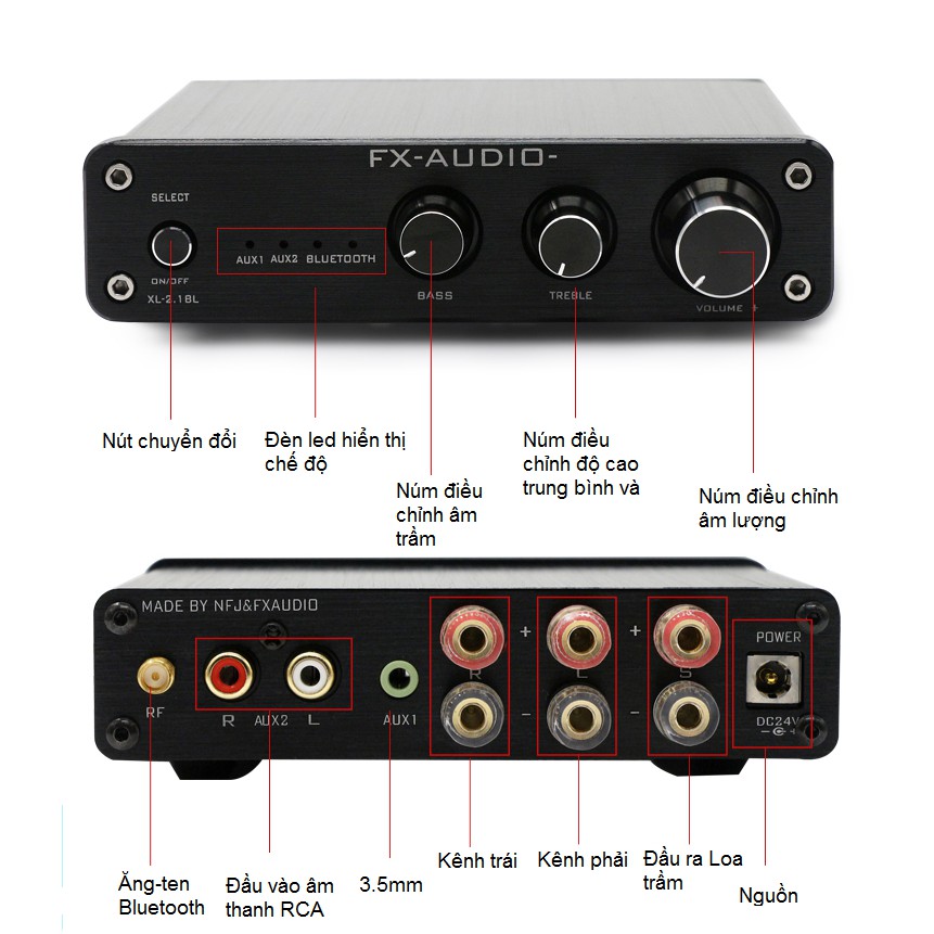 FX-âm thanh được biết đến với các bộ khuếch đại FDA, không giống như các thiết bị phổ biến nhất của các thương hiệu FX Audio, khuếch đại XL-2.1BL này được trang bị chỉ với analog đầu vào và kết nối thông qua Bluetooth 4.0
