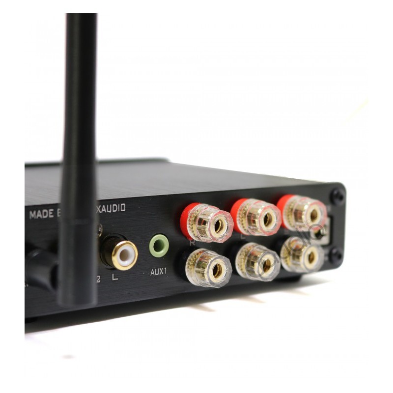 Analog đầu vào âm thanh stereo hai cũng có thể được tìm thấy trên mặt sau của khuếch đại; Lần đầu tiên thông qua 3.5mm Jack tiếp đến thông qua jack RCA. Sau đó chúng tôi có các kết nối choăng-ten Bluetooth 4.0