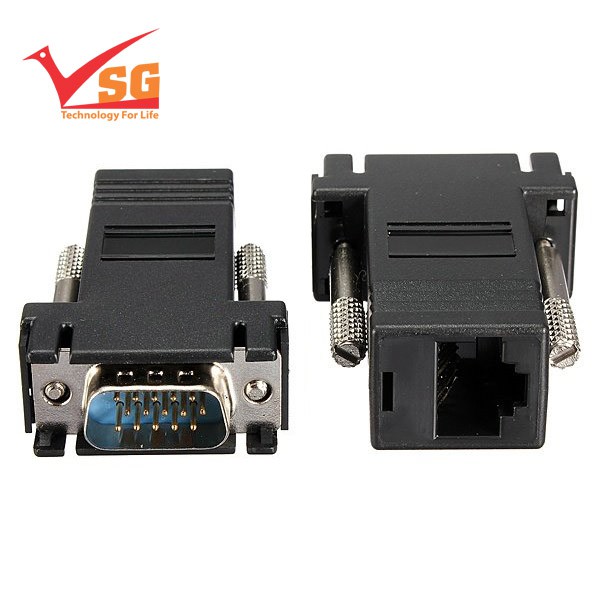 - Đầu chuyển đổi VGA sang cáp mạng RJ45. Tận dụng cáp mạng có sẵn làm cáp tín hiệu VGA, giúp bạn tiết kiệm chi phí, dễ dàng thi công lắp đặt.