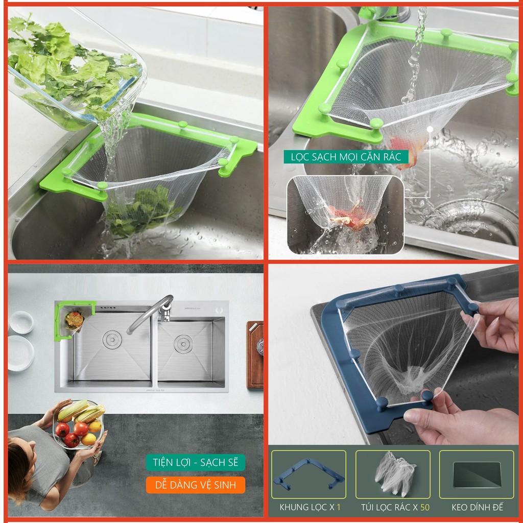 🔥[KHUNG + 50 TÚI LỌC] KHUNG LỌC RÁC GẮN BỒN RỬA, LỌC THỨC ĂN THỪA, TIỆN LỢI• Thiết kế thông minh, bền đẹp, dùng được cho mọi loại bồn rửa, co giãn tốt