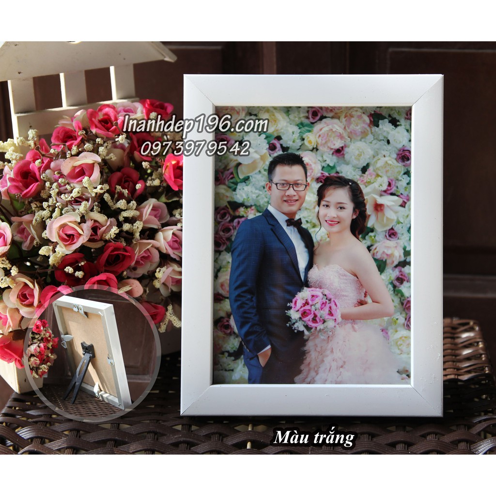 Khung ảnh để bàn của Inanhdep196.com chất liệu nhựa composit nhìn giả gỗ sang trọng ,mặt mika dầy, bìa sau là bìa sần chống mốc ,sau có chân để bàn dọc hoặc ngang bằng nhựa rất chắc chắn và cả móc treo với các kích cỡ chuẩn ảnh thật 100% như bên dưới: