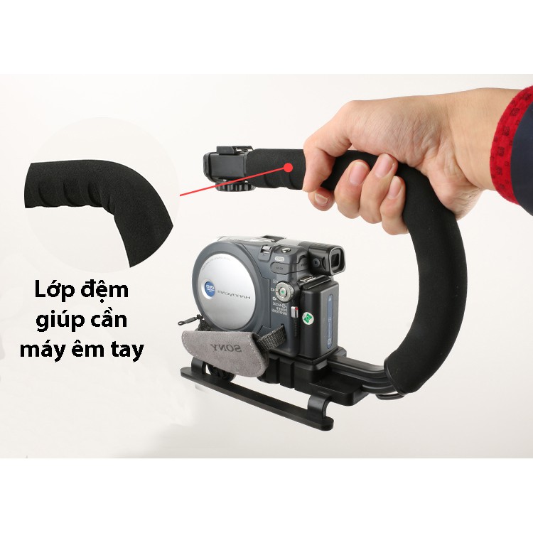 -Hỗ trợ cầm trên tay dễ dàng, chắc chắn hơn, đỡ mỏi tay khi cầm những thiết bị nặng. Ví dụ như DSLR có thể nặng tới 1-2 kg.