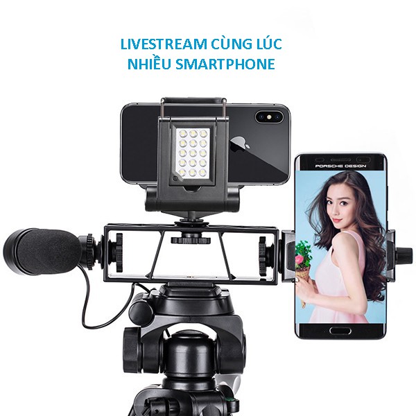 Điện Thoại & Phụ Kiện > Phụ kiện > Phụ kiện selfie > Giá đỡ || Khung gắn nhiều điện thoại, thiết bị lên tripodCòn hàng