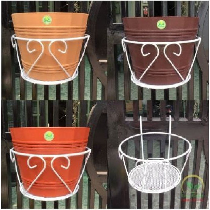 Khung-Giá-Móc-Giỏ Sắt Tròn Tim Treo Hàng Rào Ban Công Bọc Nhựa Dày, Siêu Bền, Không Rỉ, Hàng Đẹp-chh