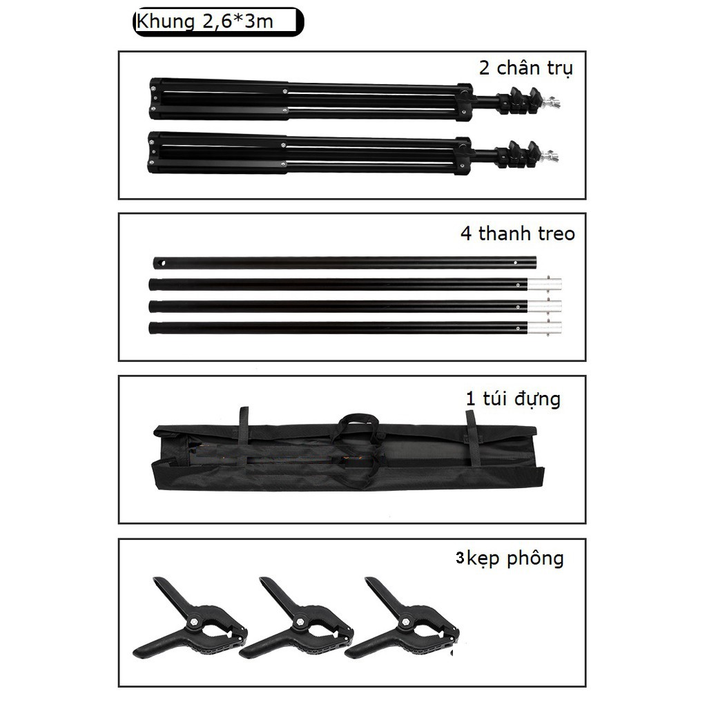 Cameras & Flycam > Phụ kiện máy ảnh > Thiết bị ánh sáng và phòng chụp || Khung giá treo phông nền di động chữ U KT 2,6*3m chụp ảnh quay video lookbook, ảnh cưới, livestream (tặng kẹp, túi đựng)Còn hàng