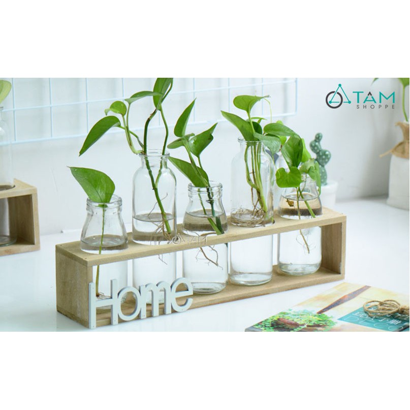 Bộ khung gỗ lọ thủy tinh cắm hoa cách điệu đẹp mắt, kết hợp cùng chữ gỗ dễ thương thích hợp cắm hoa để bàn khách, bàn làm việc hoặc ban công cửa sổ. Khung gỗ gồm màu tự nhiên hoặc sơn trắng mộc mạc. Hãy cảm nhận sự thú vị cùng những chậu cây nhỏ xinh để trên bàn làm việc, xếp một dãy xinh xinh trên thềm cửa sổ, hay một vườn cây xanh xanh thư giãn ngoài ban công sau những giờ làm việc căng thẳng....>>> CHI TIẾT SẢN PHẨM: