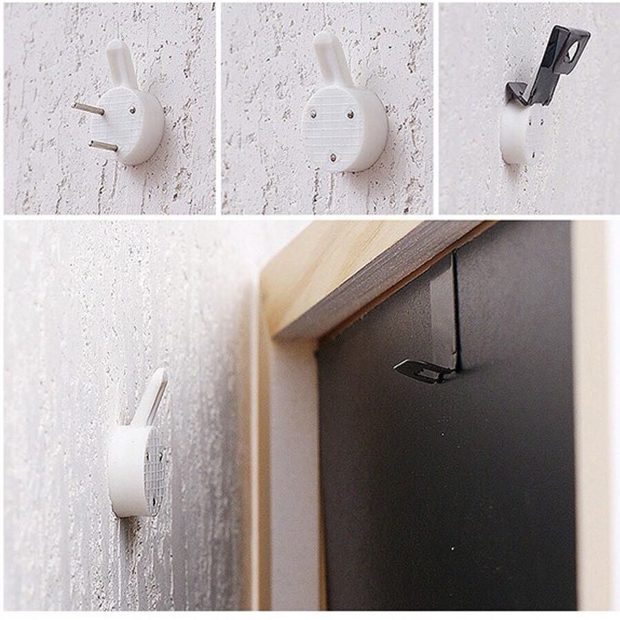 Bước 2: Đóng đinh chân vào các vị trí đã đánh dấu . Lưu ý, móc trắng giơ lên trên, 3 đầu kim giơ ra ngoài, dùng búa đóng 3 đầu kim vào trong tường .