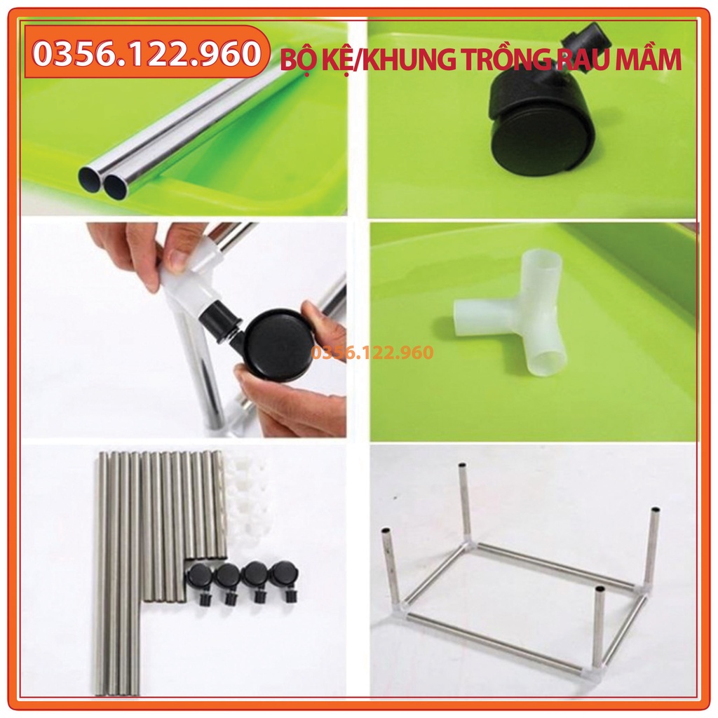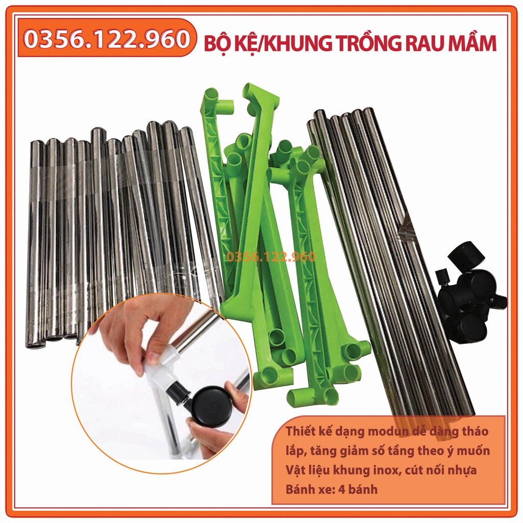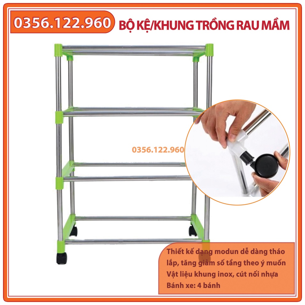 Bộ kít 3 tầng bao gồm: Giá đỡ có 4 bánh (dùng để 8 khay trồng rau mầm)