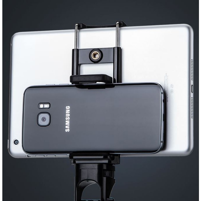 Mô tả: Khung kẹp điện thoại máy tính bảng lên chân đế (tripod) máy ảnh, gậy tự sướng. Khung kẹp điện thoại máy tính bảng tương thích với các máy điện thoại kích thước 3.5 đến 6inch và máy tính bảng từ 7-11 inch như IPad mini, IPad 2/3/4 …