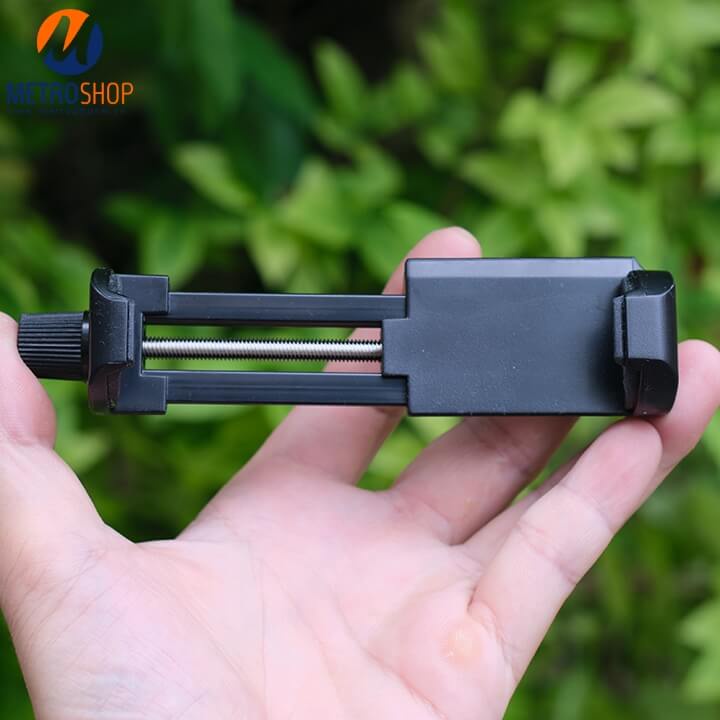 Đầu ren chuẩn ren của chân máy ảnh 1/4″ có thể gắn lên bất cứ chân máy ảnh lớn nhỏ. Hai cạnh của khung kẹp giữ máy làm vát vào phía trong giữa máy chắc chắn hơn không bị trượt ra ngoài. Ngoài dùng gắn lên chân máy ảnh thì có thể gắn lên các mount gắn trên xe làm camera hành trình hoặc làm bản đồ dẫn đường.
