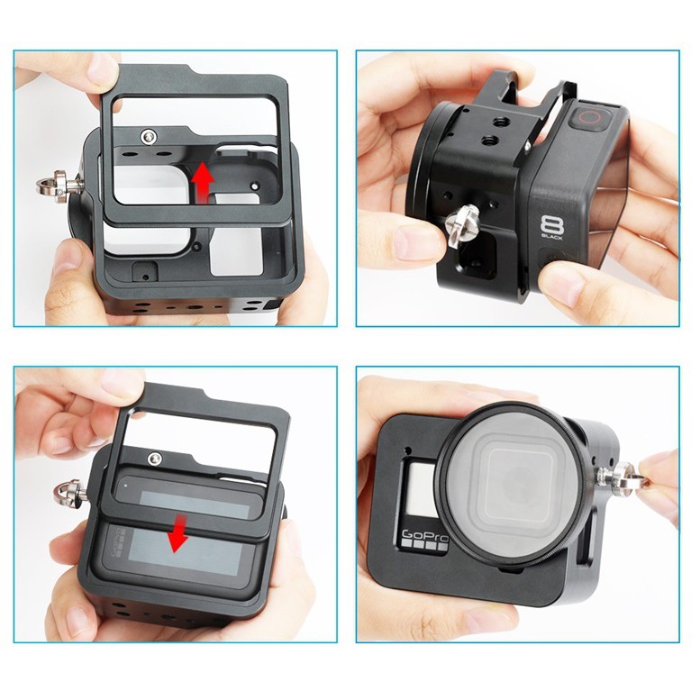 Giới thiệu KHUNG KIM LOẠI GOPRO HERO 8 CÓ FILTER, GÀI ĐÈN
