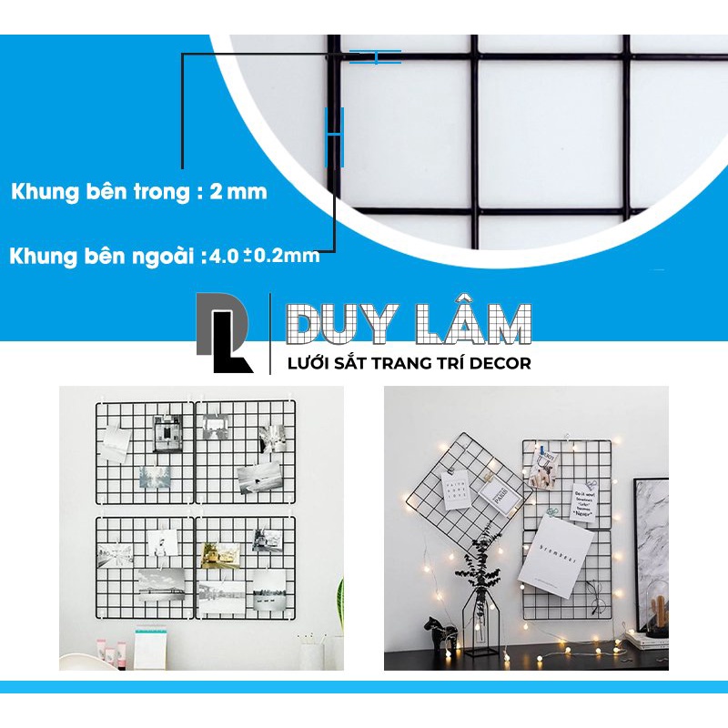 Khung lưới sắt decor trang trí tấm 35x35cm treo tường (Tặng kèm móc dính tường) - Lưới sắt Duy Lâm