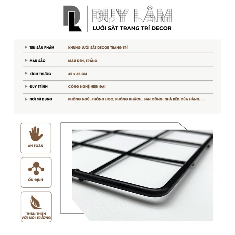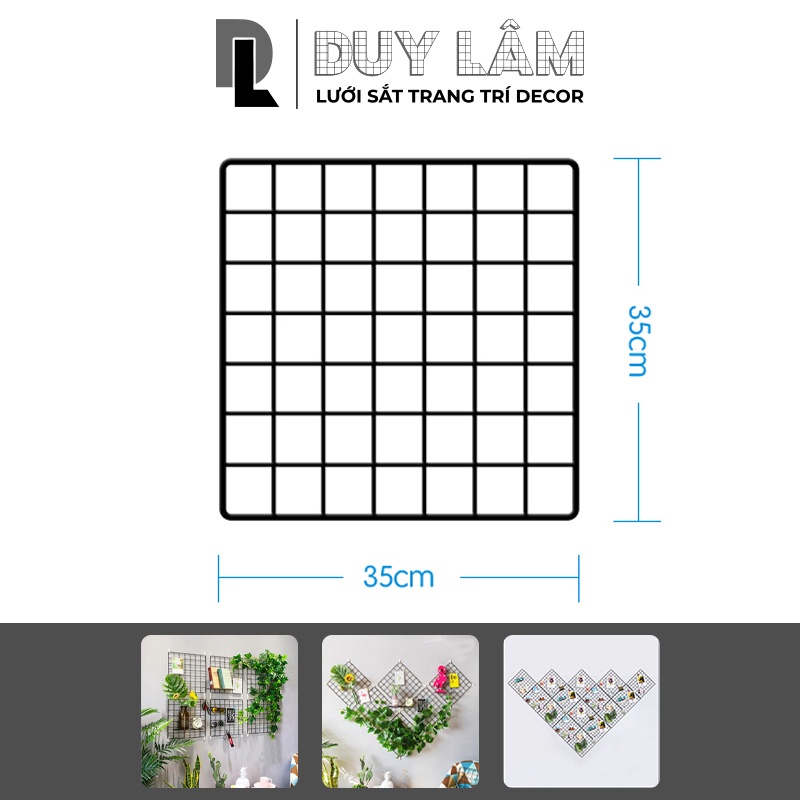 Giới thiệu Khung lưới sắt decor trang trí tấm 35x35cm treo tường (Tặng kèm móc dính tường) - Lưới sắt Duy Lâm